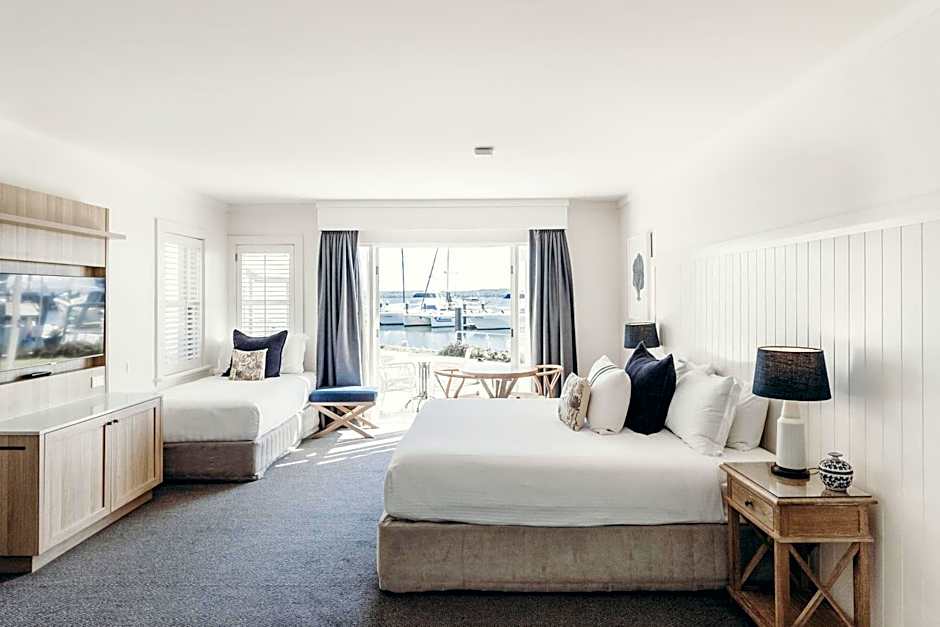 This spacious room offers sweeping views across the marina, the bay area and pool. Enjoy a relaxing beverage on your balcony while taking in the coastal sea breezes. Inside you have the choice of either a king bed or twin-single beds with private bathroom facilities. There is also a reading chair, mini bar, tea and coffee making facilities and smart TV.